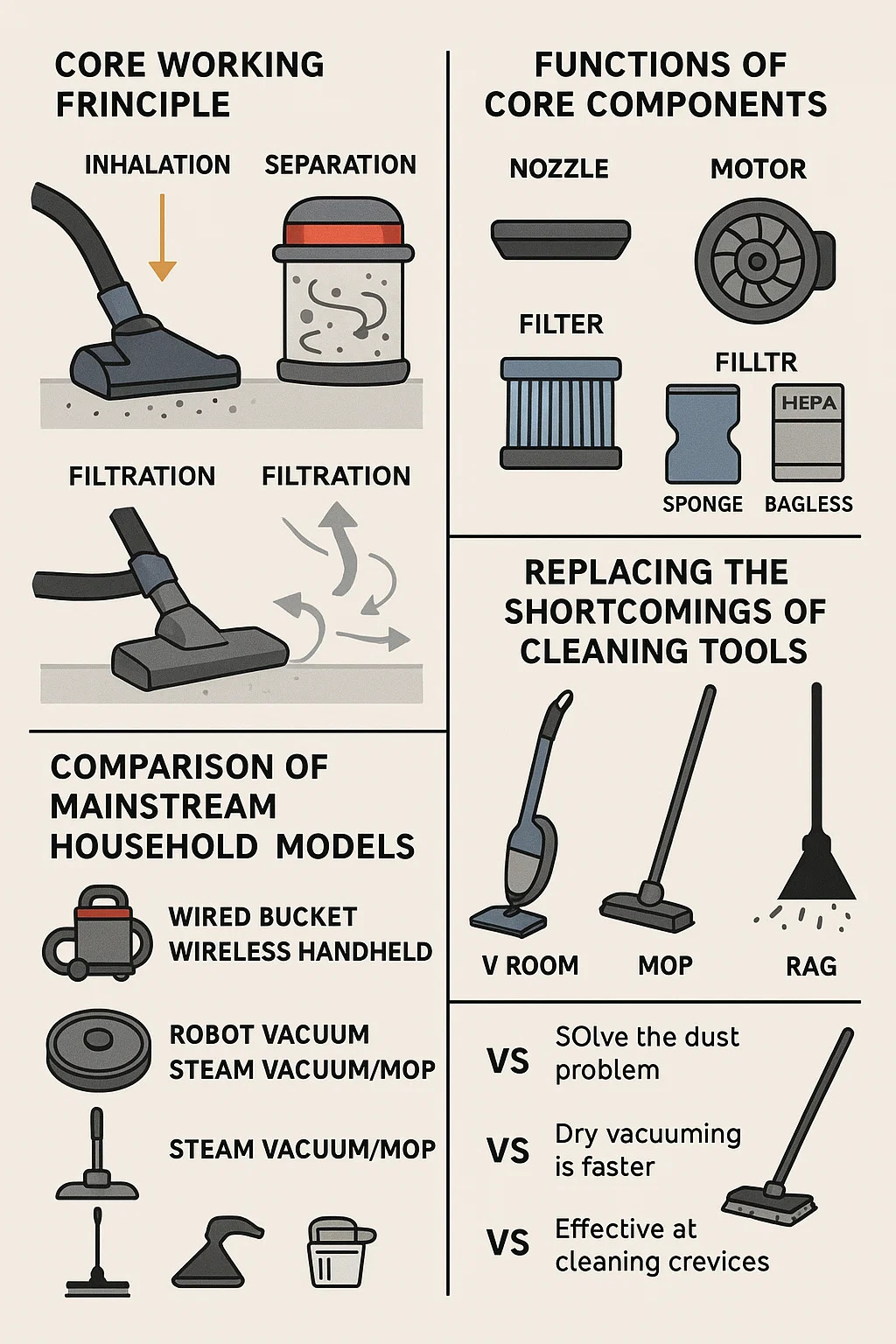 모터 : 기계의 "심장"; 더 높은 속도는 흡입을 증가시킵니다 (일반적으로 구리 모터> 알루미늄 모터);
